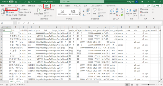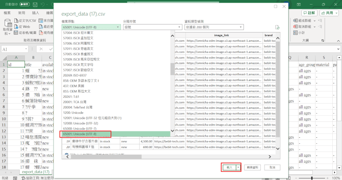 2025年11月10日 檔案匯出後為亂碼 CSV 檔案,應如何開啟? OmniSegment 系統匯出的檔案皆為 CSV 格式,若開啟時出現亂碼或欄位錯位的情況,通常是因為檔案的 編碼格式與開啟工具預設格式不一致。 以下說明如何用 excel 開啟 csv 格式的檔案。 操作流程 1. 使用 Excel 啟動新的空白活頁簿,或開啟系統匯出的CSV檔案。 2. 點選【資料】→【從文字/CSV 取得資料】。 3. 選取匯出的 CSV 檔案,並於按下【匯入】。 4. 下拉選擇檔案格式「UTF-8」,按下載入。 5. 載入完成後即可正常顯示、編輯您的檔案。