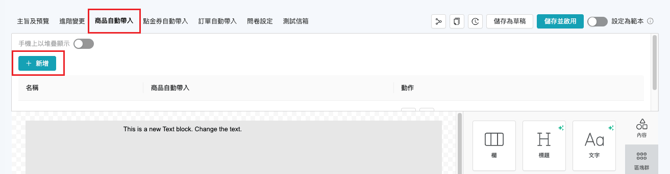 點選【個人化資訊帶入】→ 選擇稍早設定的商品自動帶入資料。