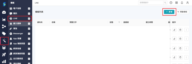 點擊【新增】,建立一則要發送的 LINE 模板。