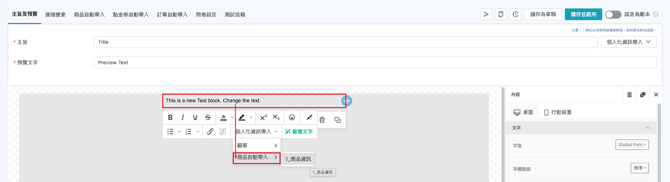 測試信件中的商品/訂單自動帶入內容僅供參考,建議將測試信件發送給測試人員,即可完整瀏覽信件內容。
