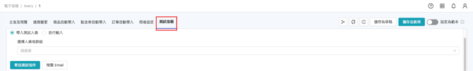 2. 在模板編輯完成後,點擊上方工具列中的【測試信箱】。