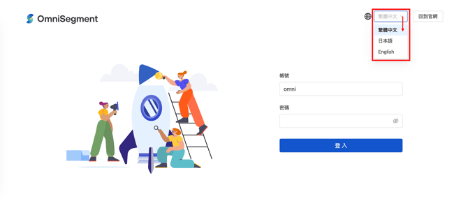 1. 於 OmniSegment 登入頁面 右上方的選單,選擇習慣的介面語言。