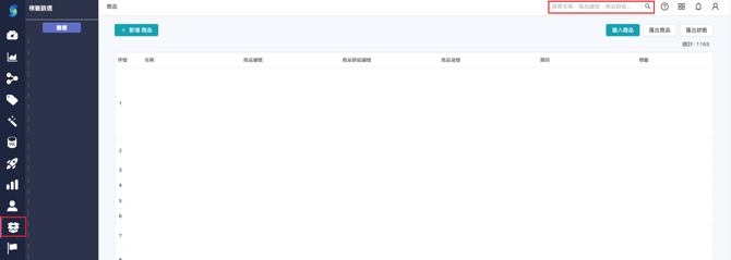 1. 在「商品」頁右上角搜尋框輸入「商品編號」或「商品名稱」。