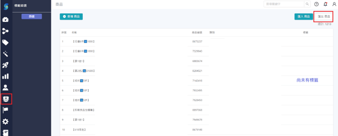 若品牌尚未建立任何標籤,請至「商品頁」點選【匯出商品】。
