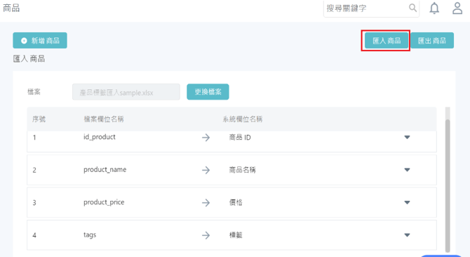 回到商品頁,點選【匯入商品】,選擇剛編輯好的檔案。