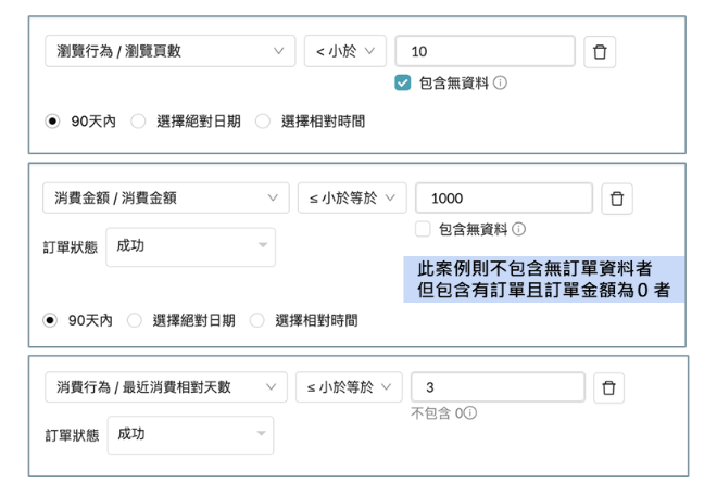 【顧客旅程/歷史資料追蹤】篩選條件新增「0」與無資料的判斷類型
