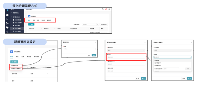 - 新增自定義欄位資料夾架構,支援最多兩層資料夾