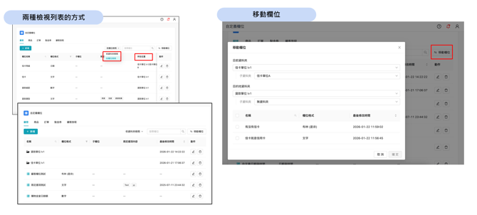 - 移動欄位:支援移動欄位至不同資料夾或是未分類