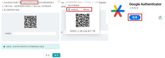 【下載 Google Authenticator App 或其他驗證應用程式】