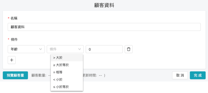 若會員資料中 沒有生日資訊(例如尚未填寫或未與 CRM 串接生日欄位),系統將無法計算該會員的年齡,也無法套用「年齡」條件篩選。