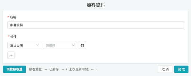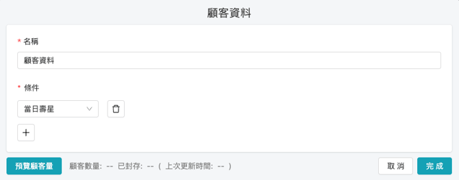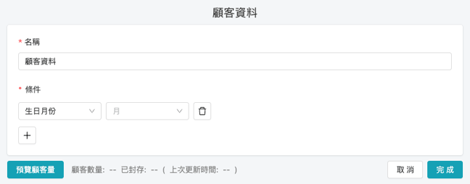 「生日」條件可系統識別會員的生日月份及日期,用於觸發生日推播、生日月活動。 您可以依據生日 月份/日期條件,設定自動化旅程。