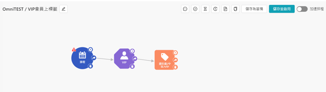 建立或開啟一個顧客旅程,並先設定好分眾條件。(例如:會員等級 = VIP)。